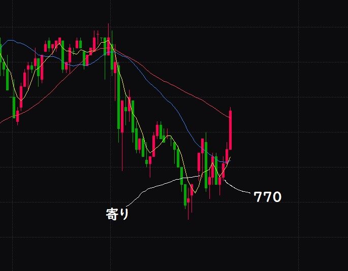 そして水曜の朝、750辺りで耐えてたので10時半に770で買い。