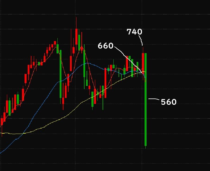 690で売り指値入れておいたけど、8時45分の寄り付きが660だったから