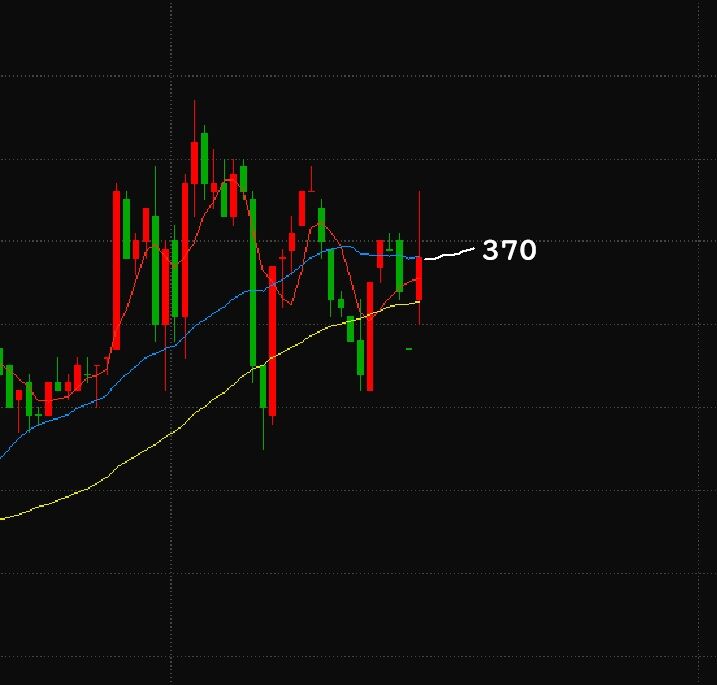 350辺りで寄り付いた瞬間に370付けたのでそこで約定させちゃいました。